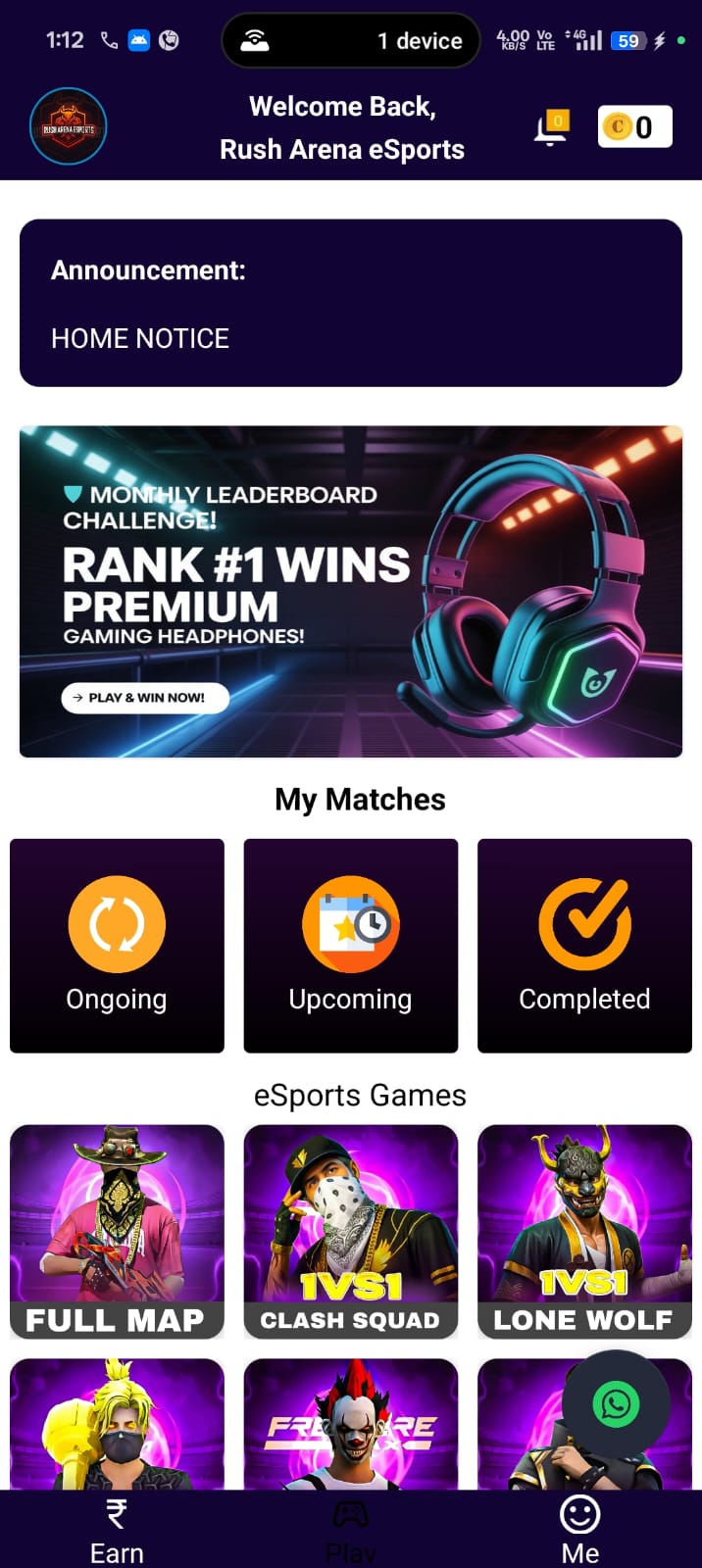 Now play and earn by downloading latest version of Rush Arena Esports .